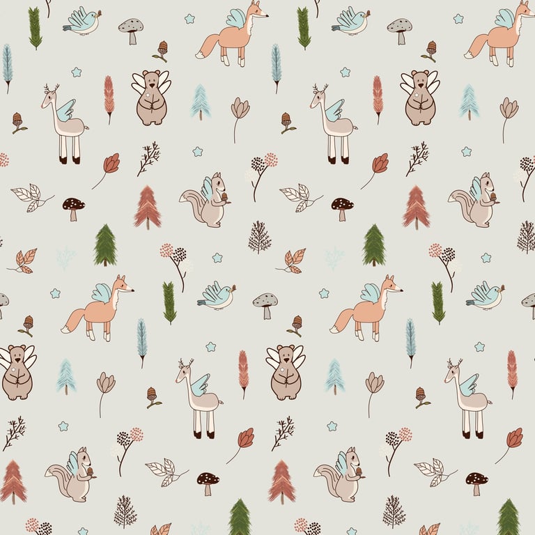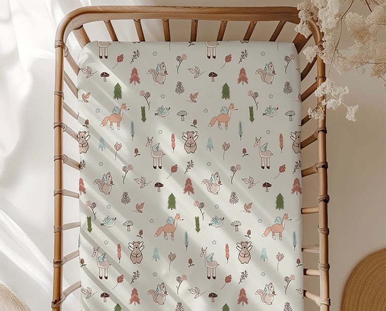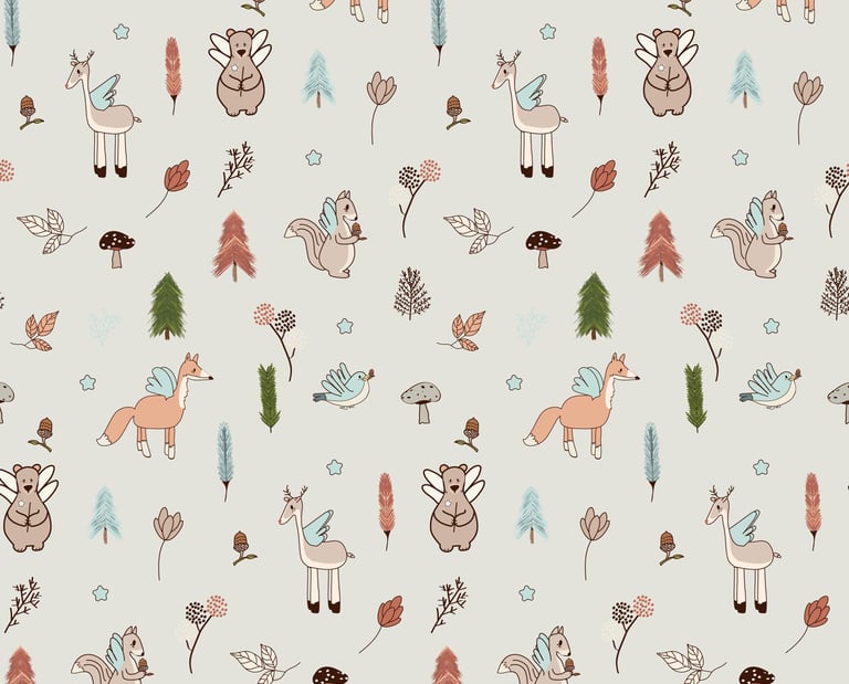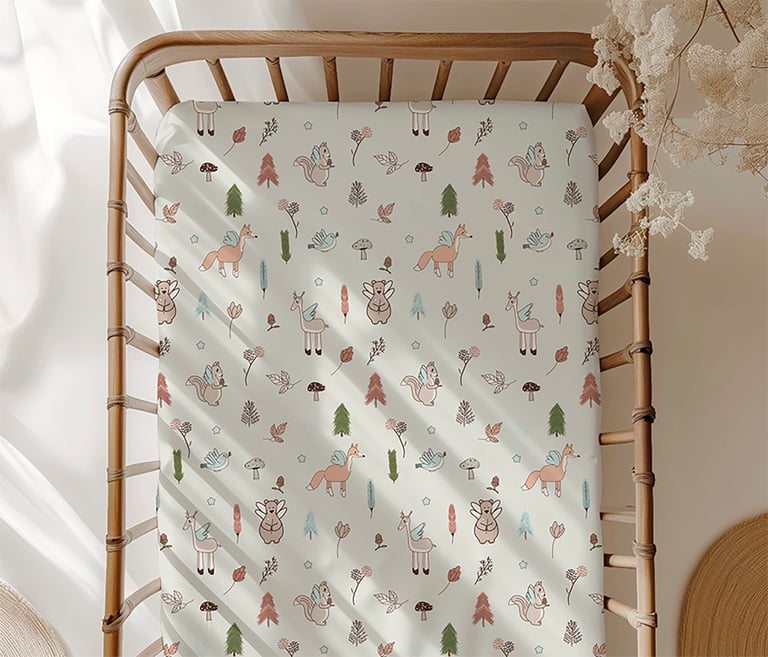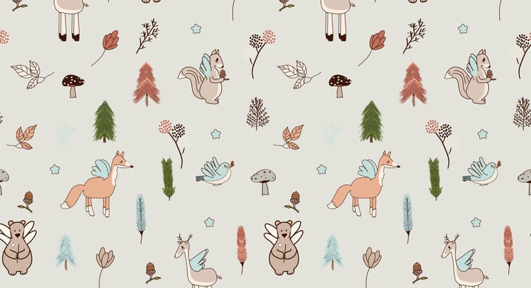 es una colección inspirada en la calma del bosque y la sensación de refugio, cuidado y pertenencia. Ilustraciones suaves, formas orgánicas y una paleta natural crean un entorno sereno, pensado para acompañar los primeros años con calidez y equilibrio.