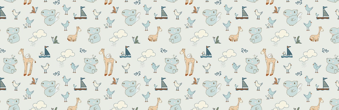 Patterns ilustrados para marcas de bebé, textiles, papelería y lifestyle, listos para licenciar y aplicar en productos reales.